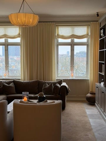 Long drapery that softly touches the floor adds warmth, softness and a sense of completeness to a room. It frames windows, filters daylight and creates a more layered atmosphere overall.