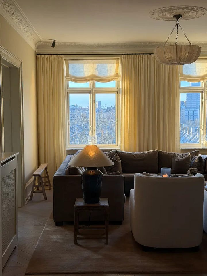 For almost a year, I lived there mostly alone while my husband was working abroad. The apartment was nearly empty. We had invested everything into the renovation itself, leaving little room for furniture. So I waited. I chose pieces that would anchor the space rather than fill it - a well-made sofa, a vintage console, a dining table with presence, a lamp that could hold the room quietly, and pieces designed to move with us into future homes.